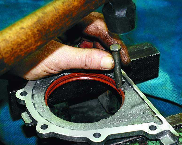 - Используя верстак либо подобную опорную конструкцию с подходящим диаметром головки, устанавливаем новый сальник.