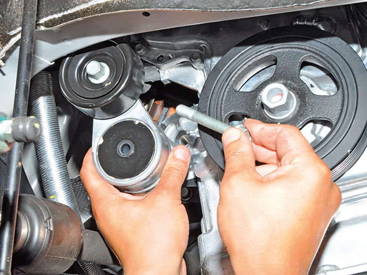 - После снятия креплений демонтировать ремень (скинув с ролика).