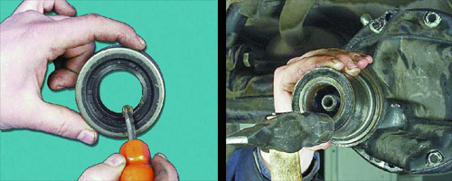 4. После снятия крепежей поддеть старый сальник и заменить его на новый.