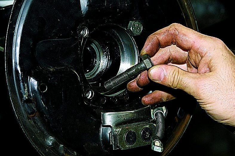 - Откручиваются гайки, которыми закреплен чулок к полуоси. Для данной процедуры подготавливаются специальный вороток и головка (лучше удлиненная 17 мм).
